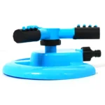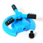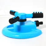 This Blue Disc Base Sprinkler – Garden & Lawn Watering Tool, rotates 360° and offers two spray modes – straight and oblique – for flexible watering. Each spray bar is equipped with four nozzles at different angles, ensuring that the water flow is evenly distributed throughout the garden. Inspired by the propeller design, the three-way layout maximizes coverage and irrigation uniformity. Made of high-quality ABS material, the streamlined ground-hugging base works reliably on any terrain.