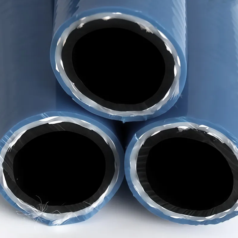Flexible and durable blue water hose with triple-layer PVC and dual-fiber reinforcement—ideal for long-term use in irrigation, washing, and water supply.